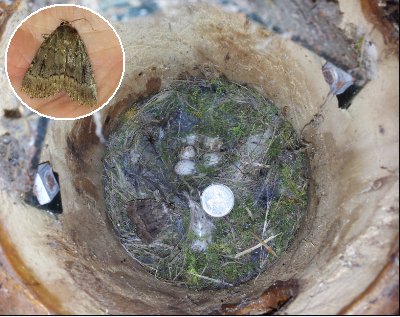 Discarded eggs found in one of the nest boxes,along with a moth.