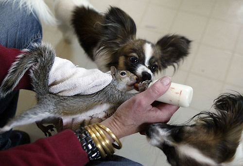 wild, bottle-fed the infant squirrel after it was brought to her house..